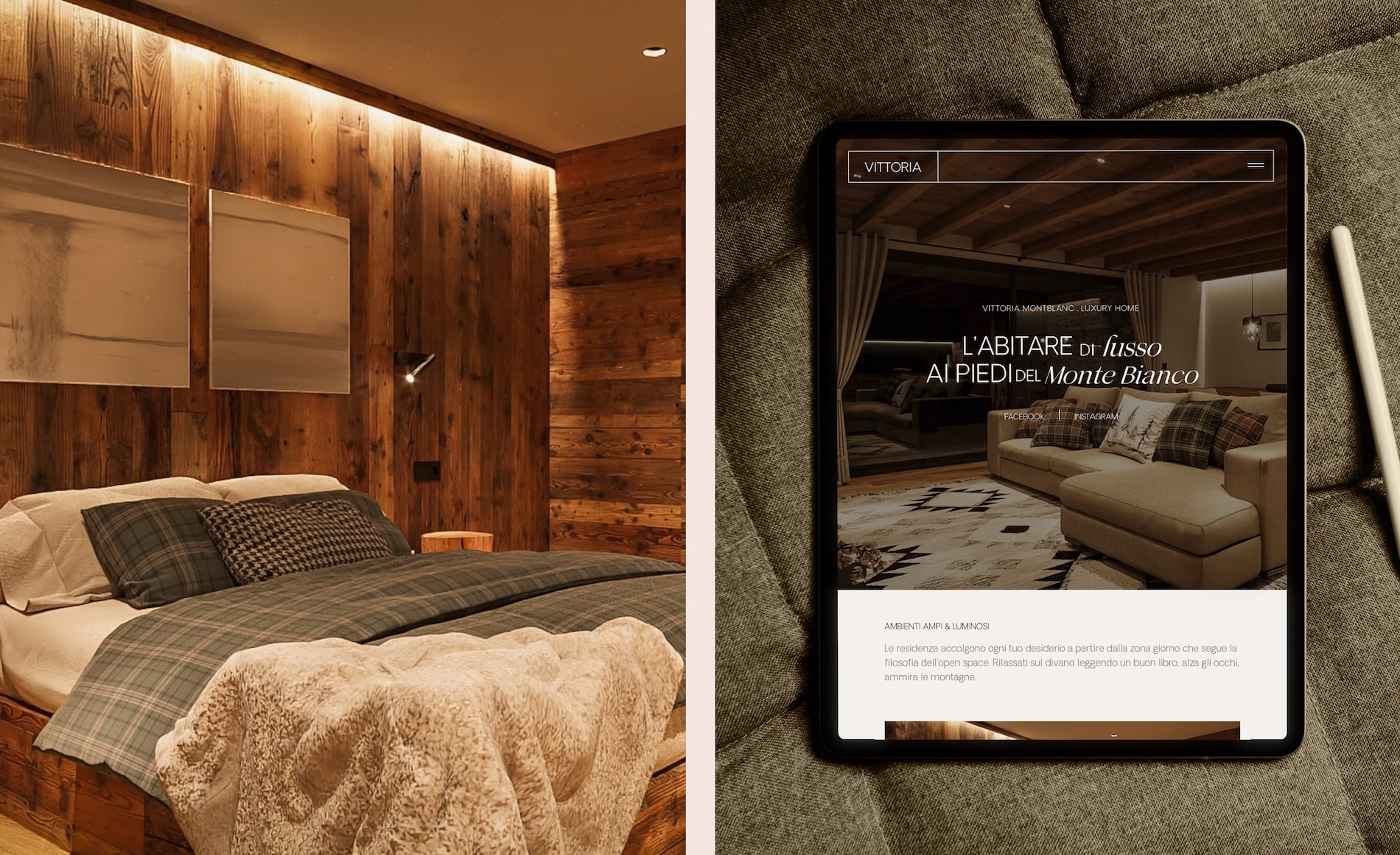 Sviluppo logo, testi, catalogo di prodotto, web design e social media management per Vittoria Luxury Home. Residenze di lusso nel cuore di Courmayeur.